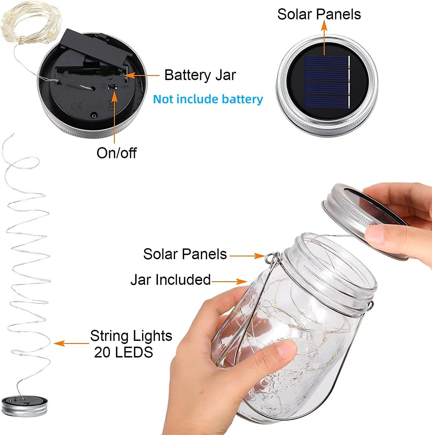 2.Suitable for outdoor decoration: this garden hooks sets are made of quality steel, durable to use, the hook can be directly inserted into the ground; Each light lid have a ring to prevent the rain from entering the light lid and jar, nice idea for outdoor patio lawn garden decoration