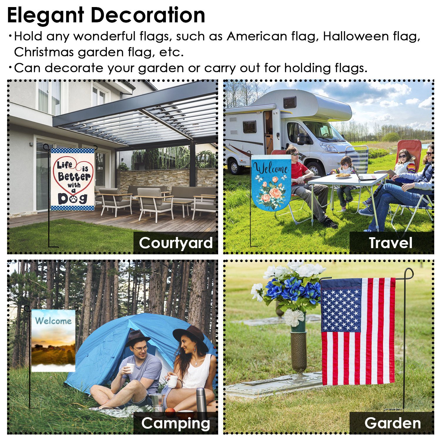 *Decorate Your Garden*:The flag stand can hold any wonderful flags,such as American flag,Halloween flag,Christmas garden flag or other garden flags to decorate your beautiful garden in a very special day!