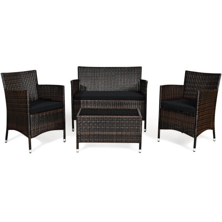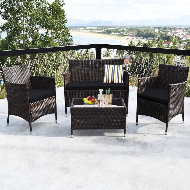 Home > 4 Pieces Comfortable Outdoor Rattan Sofa Set with Table