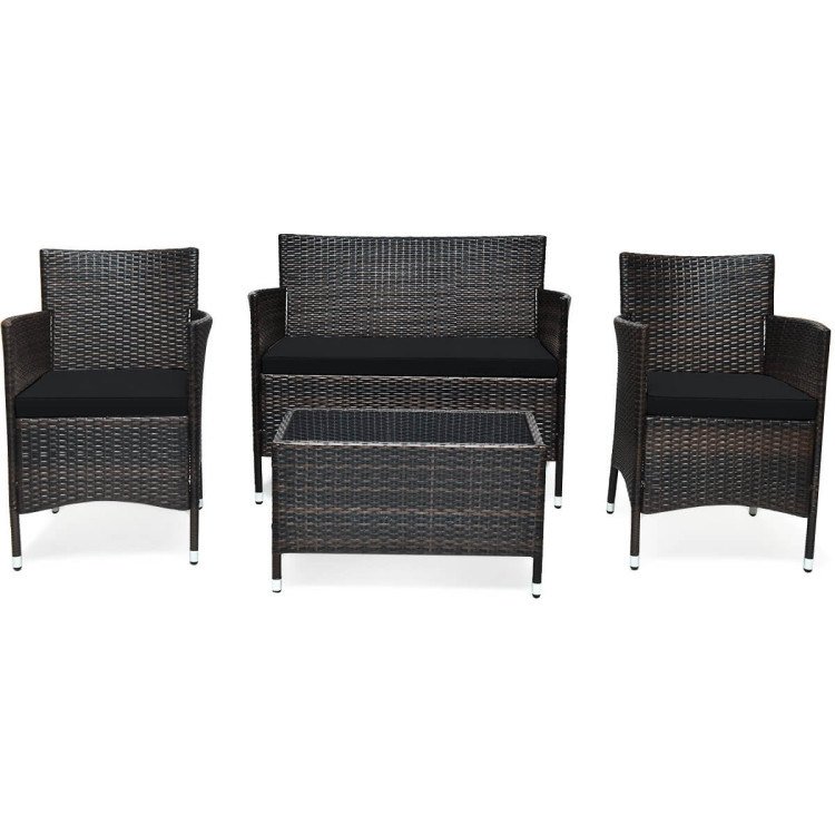 4 Pieces Comfortable Outdoor Rattan Sofa Set with Table