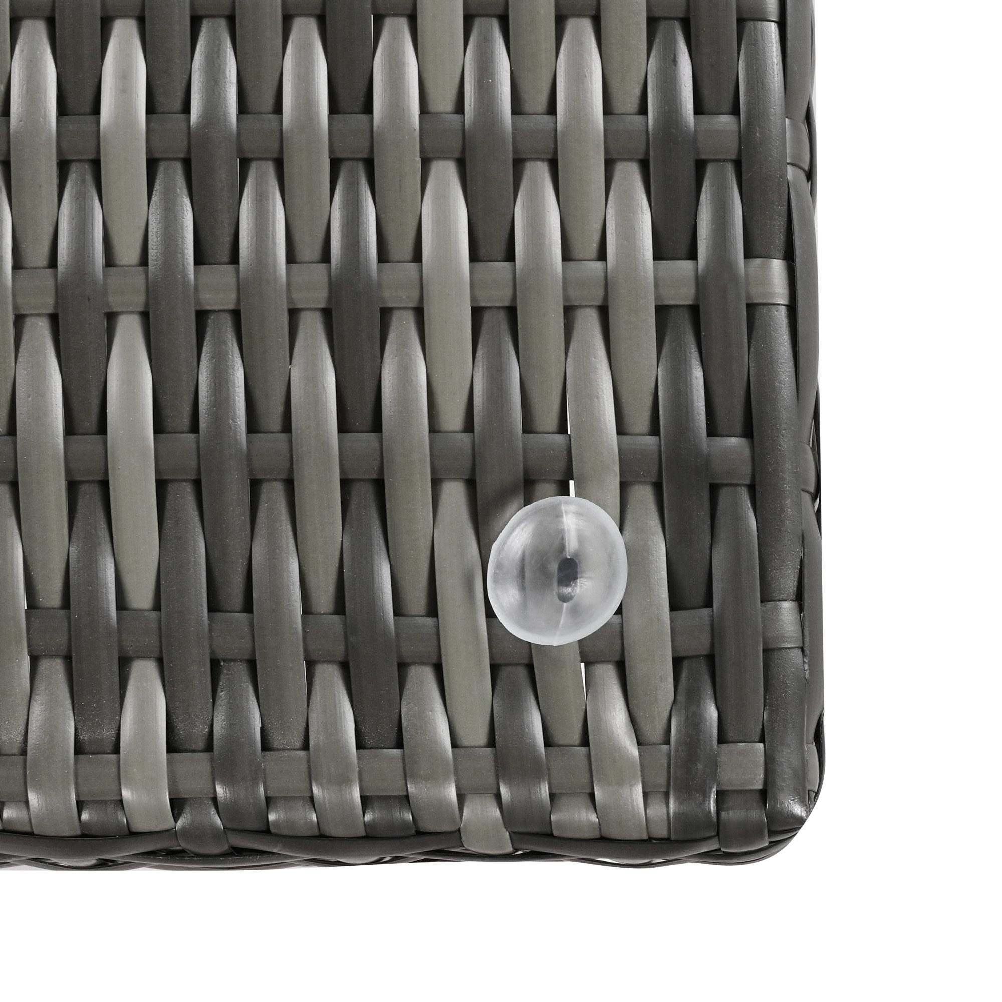 This patio rattan sofa set has a number of storage options that make it a great choice for outdoor use.The loveseat sofa features an openable seat that provides ample storage space for cushions and other items; keeping them out of sight and protected from the elements.In addition to the seating options; the set also includes a gas lift storage box that provides even more storage space for outdoor essentials and is perfect for storing larger items; such as outdoor pillows. Storage capacity for loveseat is 69 gallons and for storage box is 94.6 gallons